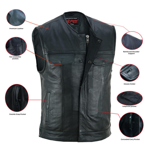 RC Men's Black Leather Motorcycle Vest with Upgraded Style