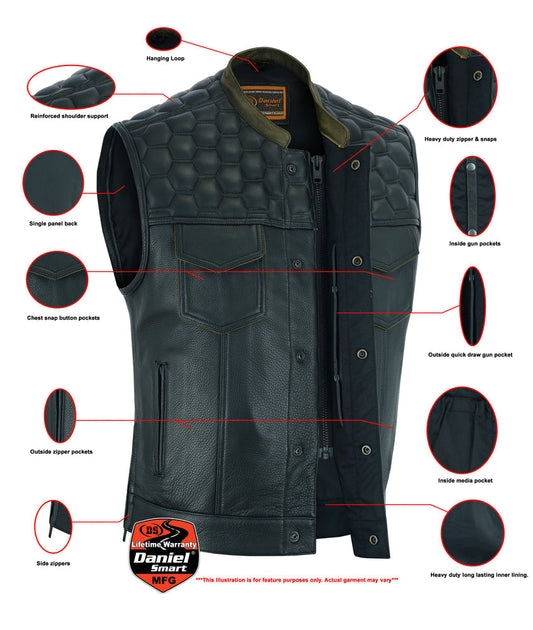 DM Men's Black Denim Single Panel Concealment Vest W/Leather Trim-