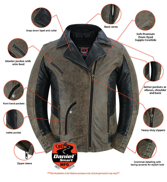 RC Women's Lightweight Drum Dyed Distressed Naked Lambskin M/C Jac