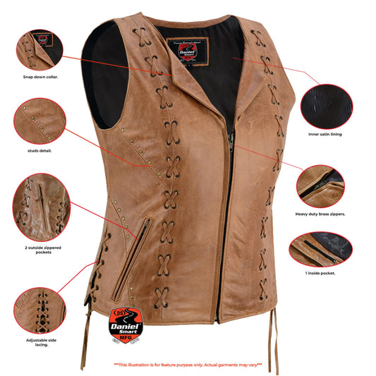 RC Women's Zippered Vest with Lacing Details