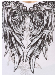 V-neck spaghetti strap top with a delicate angel wing covered in rhinestones