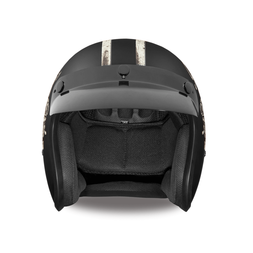 Our D.O.T. Daytona Cruiser 3/4 Shell Helmet In The Flying Ace's Graphic, Meets And Exceeds D.O.T. FMVSS 218 Standards And Is The Smallest D.O.T. 3/4 Shell Helmet Ever Made!! With 3 Different Shell Sizes, You're Sure To Get That Proportionate Fit!! Available Only With Removable, Snap On Gloss Black Bubble Visor. Many More Colors And Designs Available. Free Head Wrap And Cloth Draw String Bag Included. Sizes Range From XS-2XL.