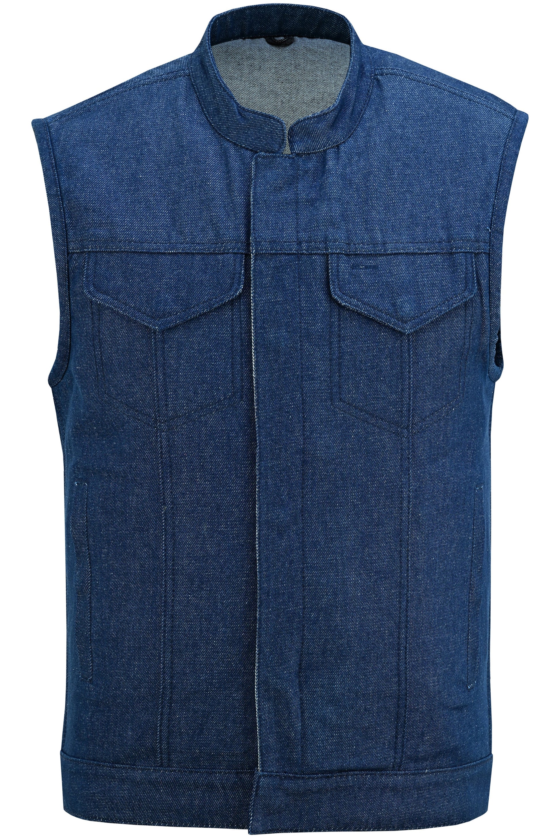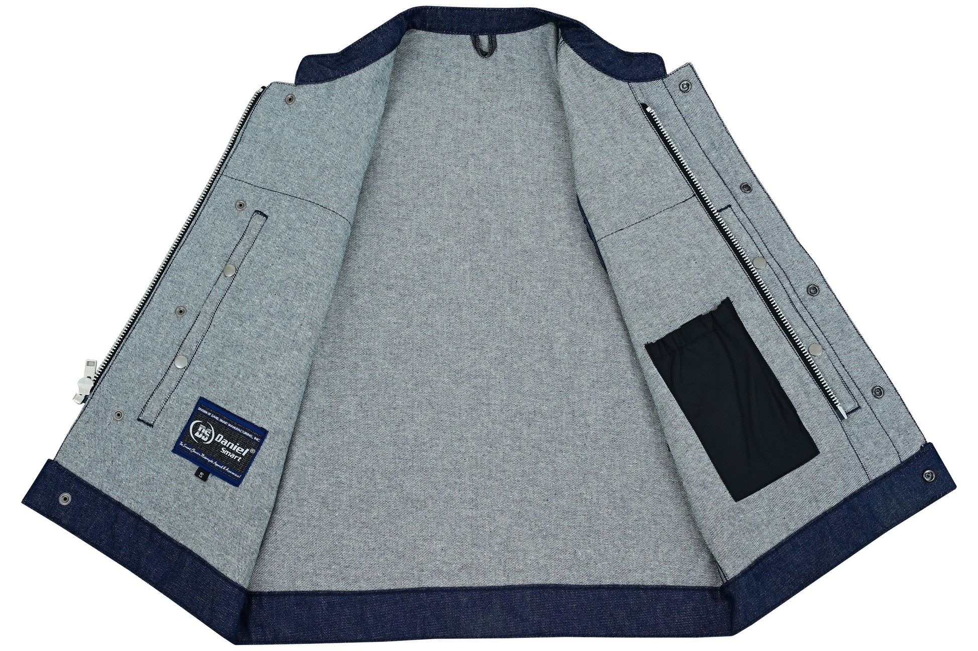 DM Men's Blue Rough Rub-Off Raw Finish Denim Vest