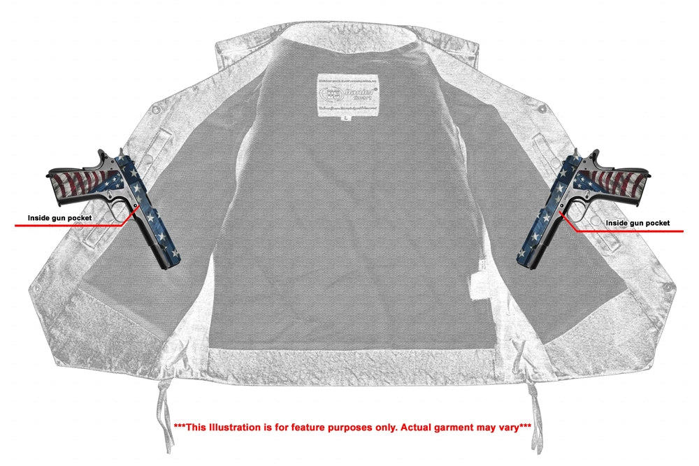2 inside concealed Smart Access Pocket made of special heavy-duty textile with built-in holsters and snap closure.