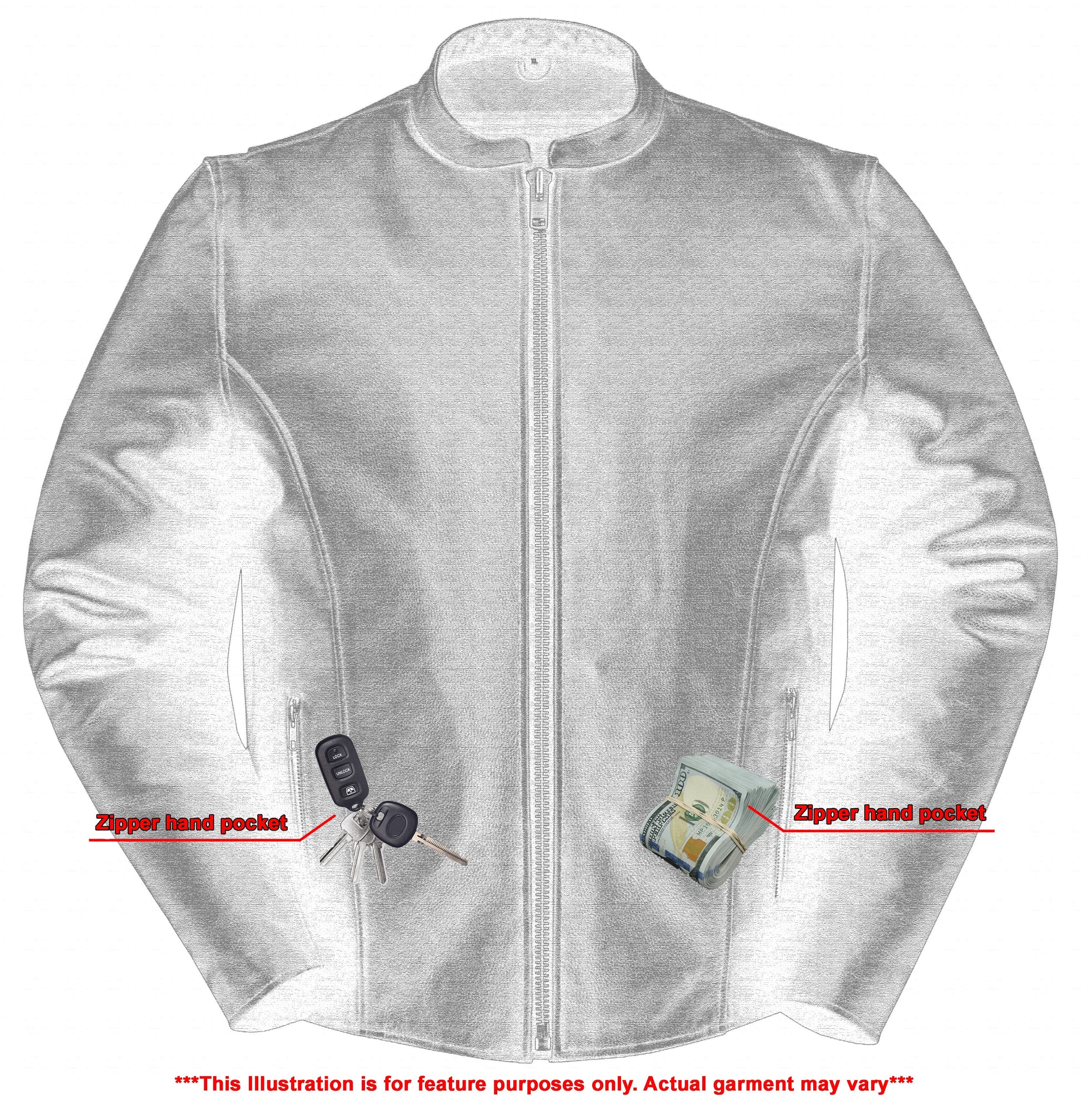 2 inside concealed gun pockets made of special heavy duty textile with built-in holsters and snap closure.