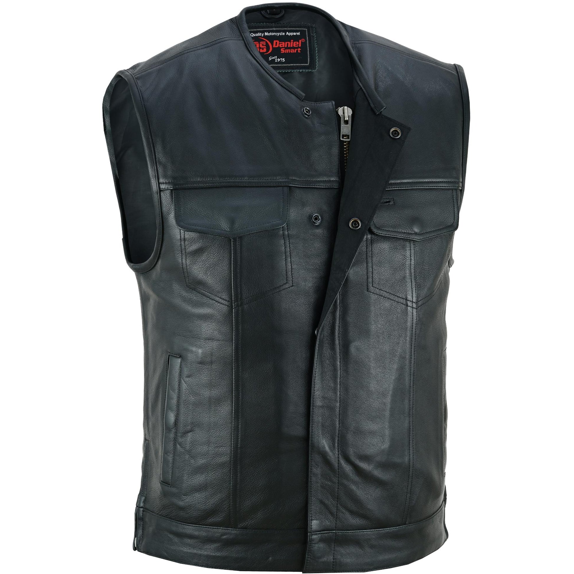 RC Men's Black Leather Motorcycle Vest with Upgraded Style