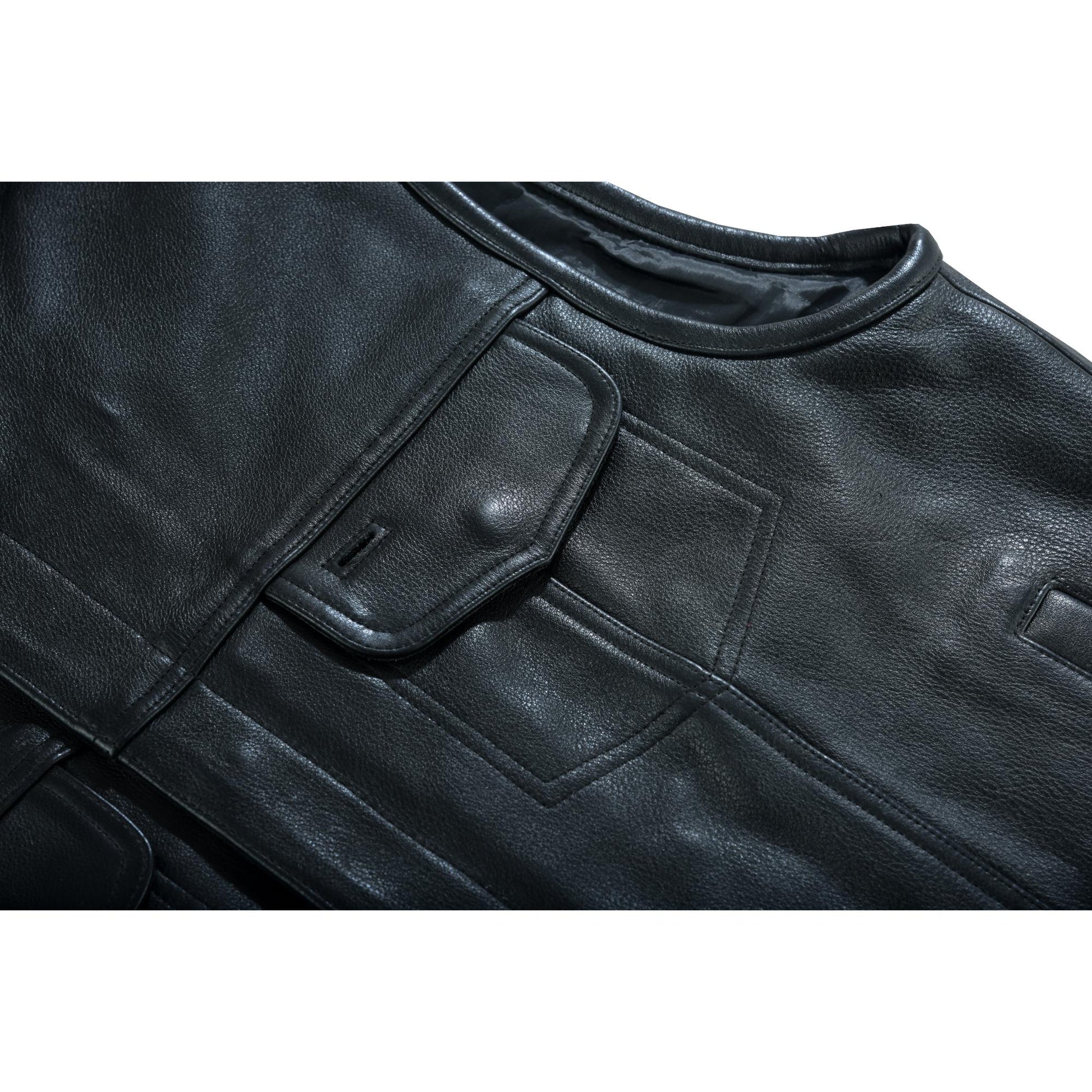 Highway Jack Men's Black Leather Motorcycle Vest Scoop Neck & Snap-Closure Pockets