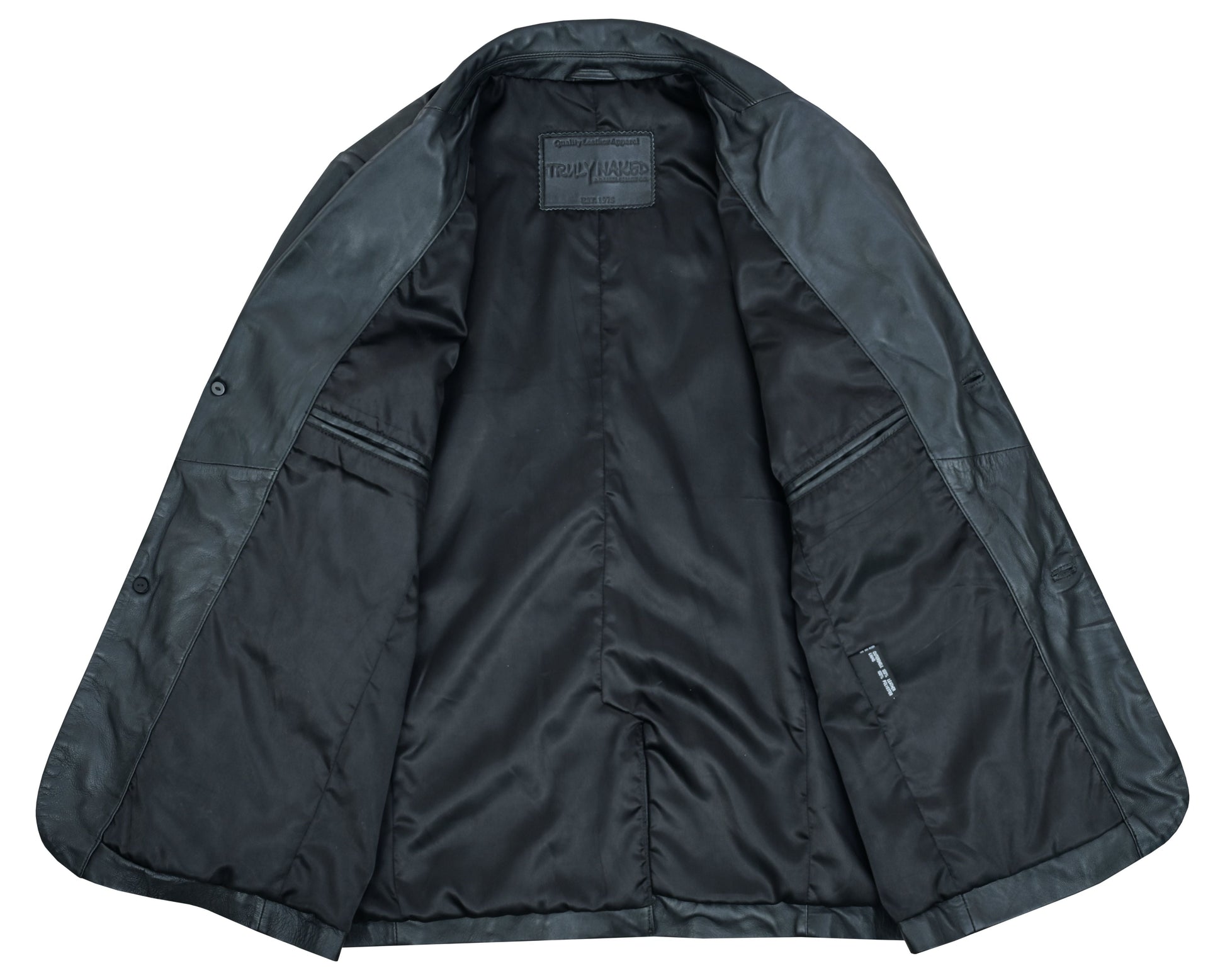 Retro Trim Men’s Black Sheep Skin Leather Blazer